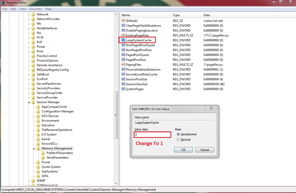 SYSTEM\CurrentControlSet\Control\Session Manager\Memory Management\LargeSystemCache