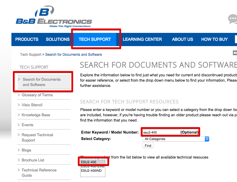 In a web browser, navigate to http://www.bb-elec.com/Tech-Support/Search-for-Documents-and-Software.aspx