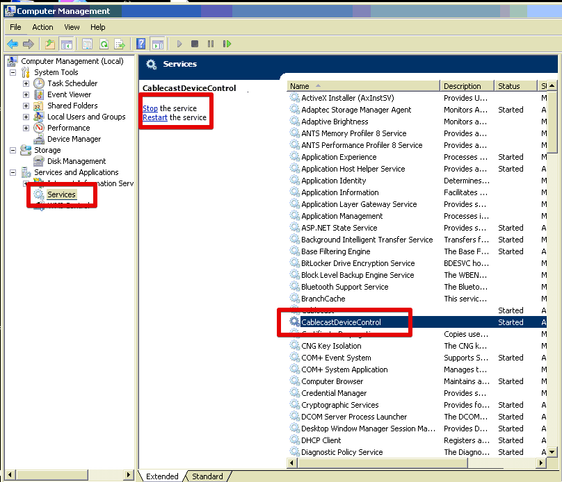 Find and select CablecastDeviceControl in the list of services.