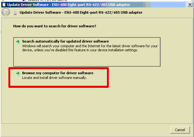 Click Browse my computer for driver software in the Update Driver Window