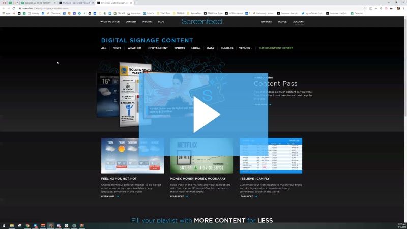 Screenfeed is a subscription based service that provides ready-made content that can be used directly in Carousel. More information about their services can be found on their website. Tightrope Media Systems and Screenfeed are not affiliated, and should also not be confused with our product "Screenweave".
