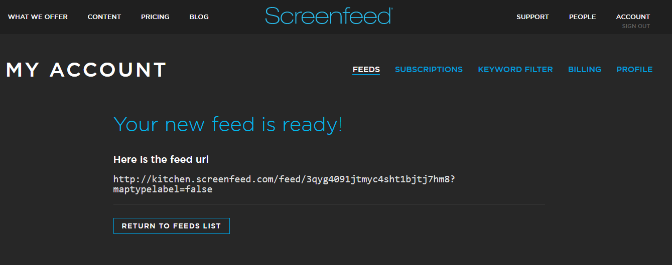 Go to screenfeed.com and purchase / start a trial for the feed type you want.