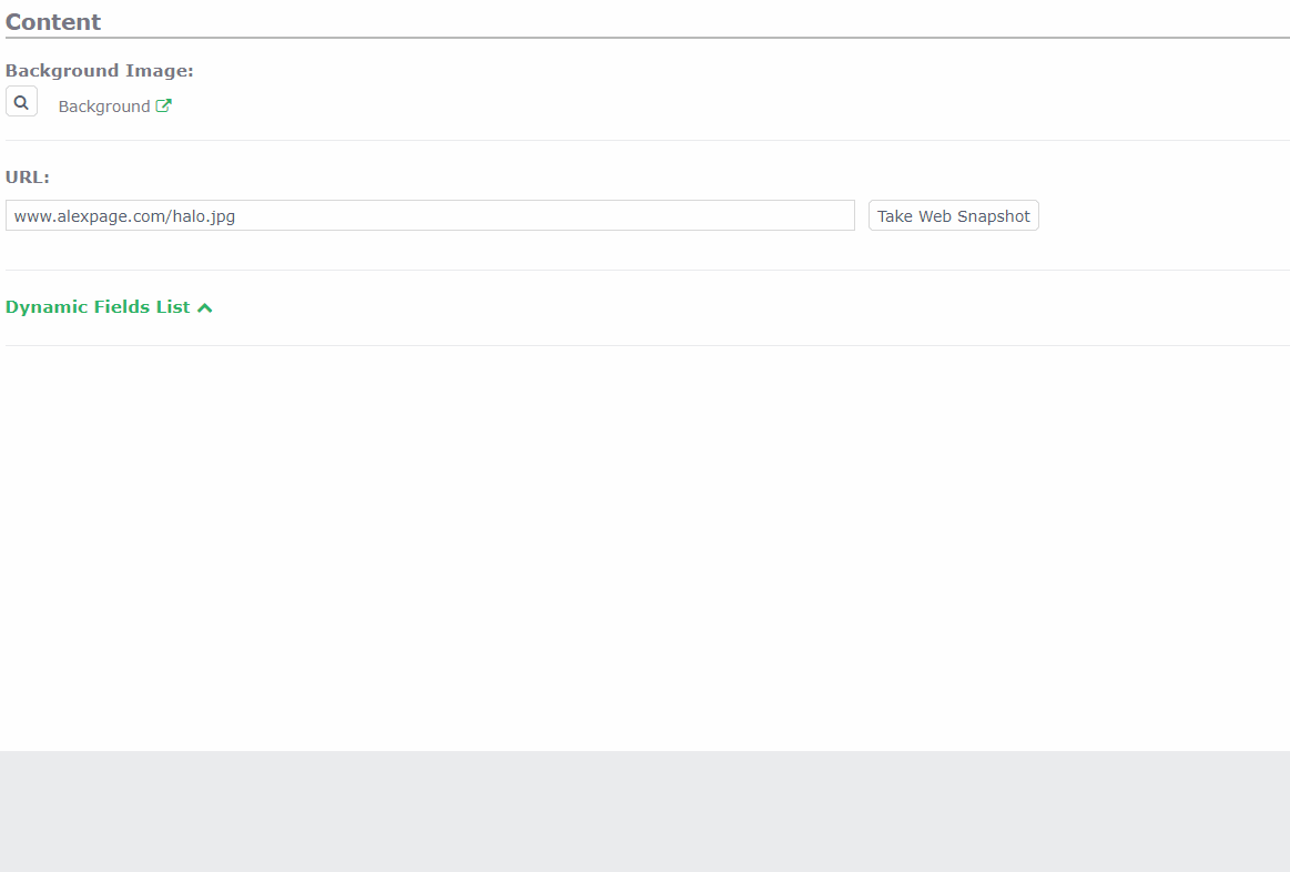 Next you're going to go to the "Content" tab. Go under "Dynamic Fields List" and find the item that contains the .jpg image. Copy the "Item tag" (surrounded in #hashtags#) and paste it into the URL block you made in step 7. In most cases, its going to be #ItemImageURL#.